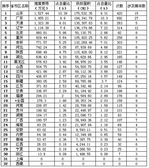 如無特別說明,藥品在報(bào)刊上投放廣告所支出的費(fèi)用單位均為萬元。