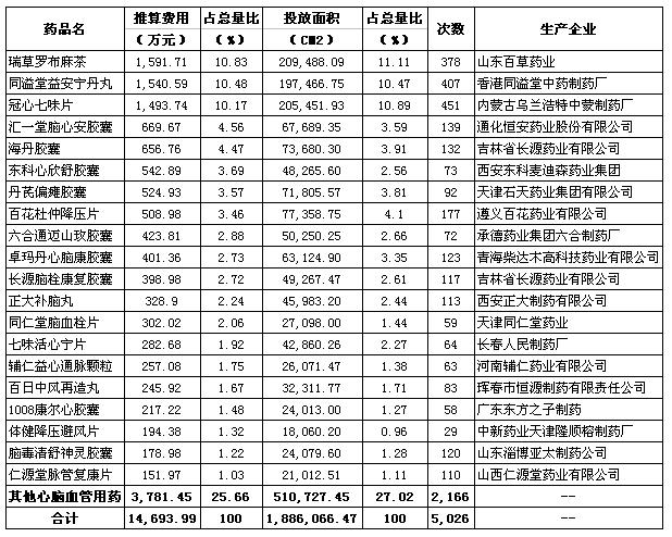 截止到今年5月,在報(bào)刊廣告市場(chǎng)投放的249種心腦血管用藥中,今年推出的新品種共41種,而這些新品種的報(bào)刊廣告投放量現(xiàn)已初顯規(guī)模。如七味活心寧片、六合通邁山玫膠囊、百日中風(fēng)再造丸等在短時(shí)內(nèi)就已擁有了較高的報(bào)刊廣告市場(chǎng)占有率(見表2)。
