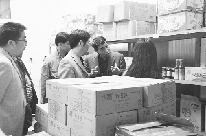 圖為桐鄉(xiāng)市局監(jiān)管人員在烏鎮(zhèn)酒店配送中心的食品原料倉庫檢查食品安全。