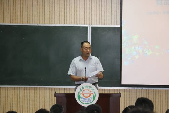 陜西省食藥監(jiān)局副巡視員王志宏向?qū)W生宣傳食品安全知識(shí)。