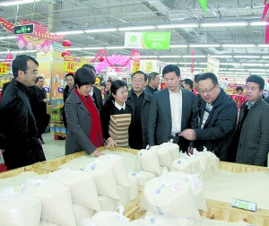 圖為寶雞市委書記錢引安(右三)檢查節(jié)日市場。