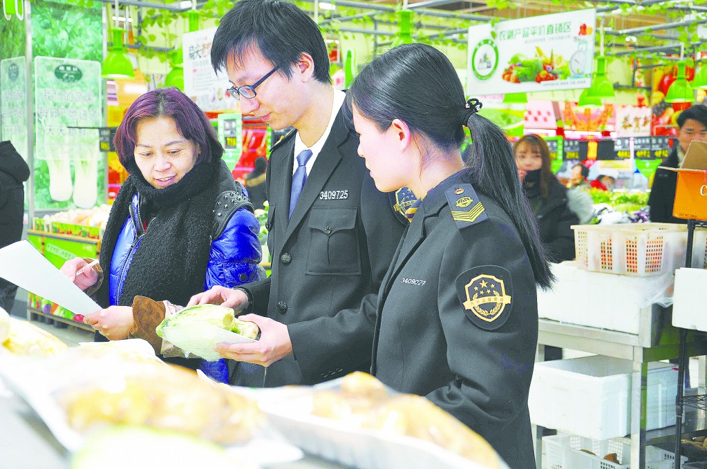 圖為該監(jiān)管部門(mén)執(zhí)法人員在超市進(jìn)行檢查