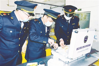圖為2月14日,執(zhí)法人員深入江西工業(yè)工程職業(yè)技術(shù)學院抽檢食品質(zhì)量。 黃躍輝 攝