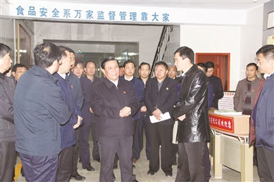 圖為許昌市委書記武國定正在調(diào)研國家食品安全示范城市創(chuàng)建工作。