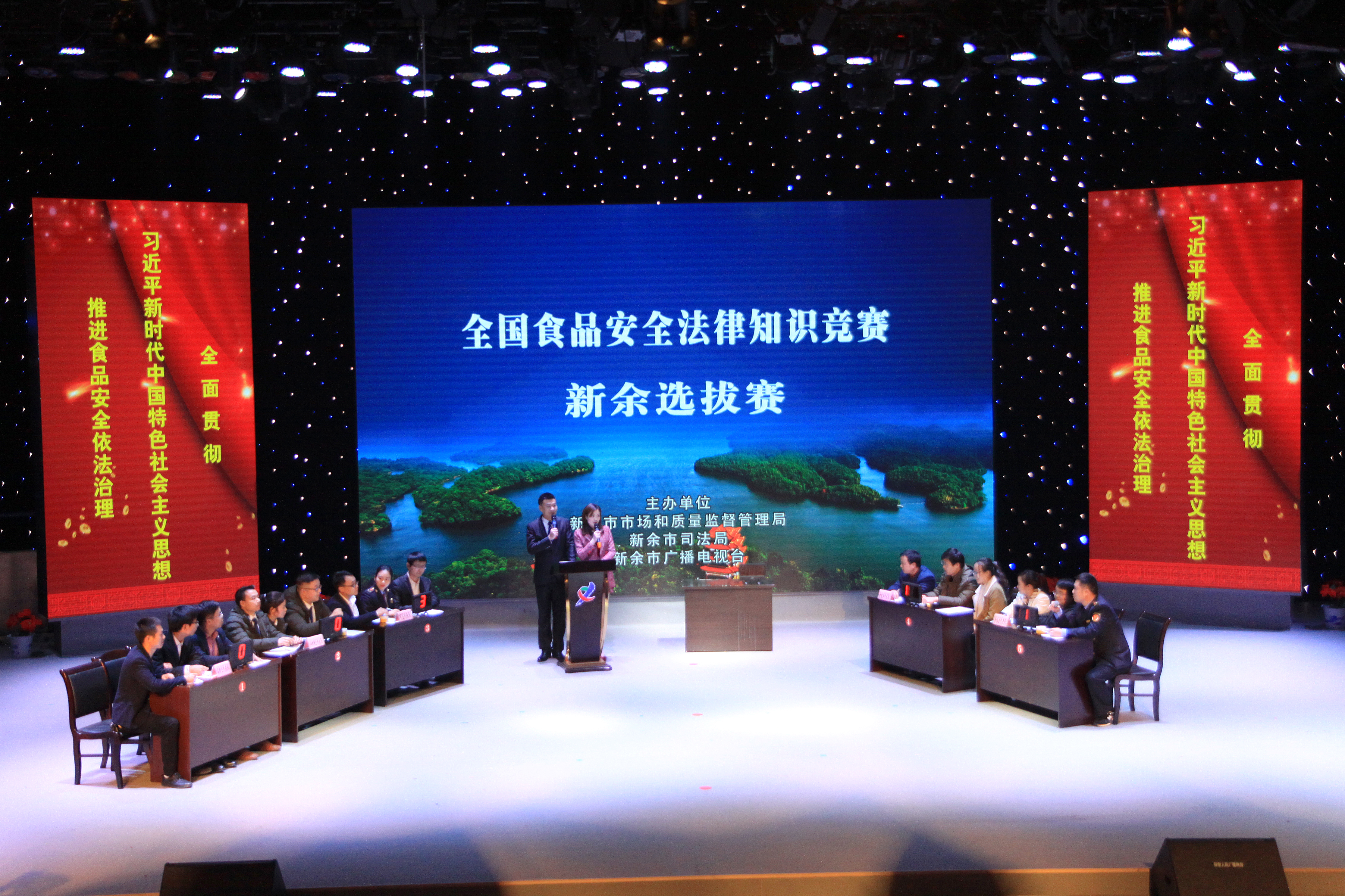 12月21日,新余市局、新余市司法局、新余市廣播電視臺(tái)聯(lián)合主辦的全國(guó)食品安全法律知識(shí)競(jìng)賽新余選拔賽在新余電視臺(tái)二樓演播廳舉行。