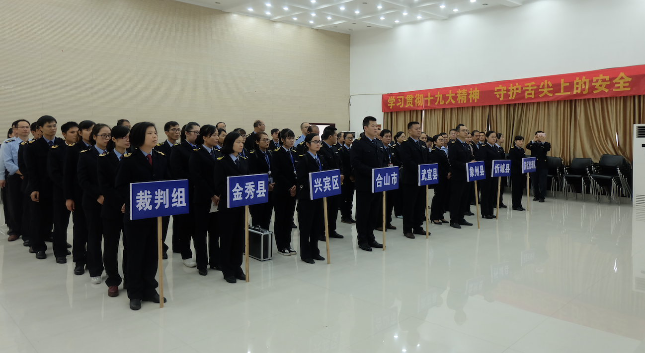 本次食品安全知識競賽,旨在落實《全國食品藥品監(jiān)督管理系統(tǒng)法治宣傳教育第七個五年規(guī)劃(2016-2020年)》要求,全系統(tǒng)深入學習《中華人民共和國食品安全法》及配套規(guī)章、《廣西“三小”條例》,為自治區(qū)食藥監(jiān)局主辦的食品安全知識競賽選拔隊員。競賽共設置食品安全監(jiān)管知識筆試,現(xiàn)場模擬食品案件執(zhí)法辦案、現(xiàn)場快速檢測三個環(huán)節(jié),既有對食品安全法律法規(guī)知識運用的考察,又有對稽查辦案技能和快速檢測動手能力的測評。來自我市轄區(qū)各縣(市、區(qū))食藥監(jiān)稽查大隊、鄉(xiāng)鎮(zhèn)食藥監(jiān)管所的13支代表隊,共39名參賽隊員同場競技,交流經(jīng)驗。通過兩天緊張激烈的競賽,金秀瑤族自治縣食藥監(jiān)稽查大隊、象州鎮(zhèn)食藥監(jiān)督所分別摘得縣域組和鄉(xiāng)鎮(zhèn)組桂冠;多名參賽隊員表現(xiàn)優(yōu)異。