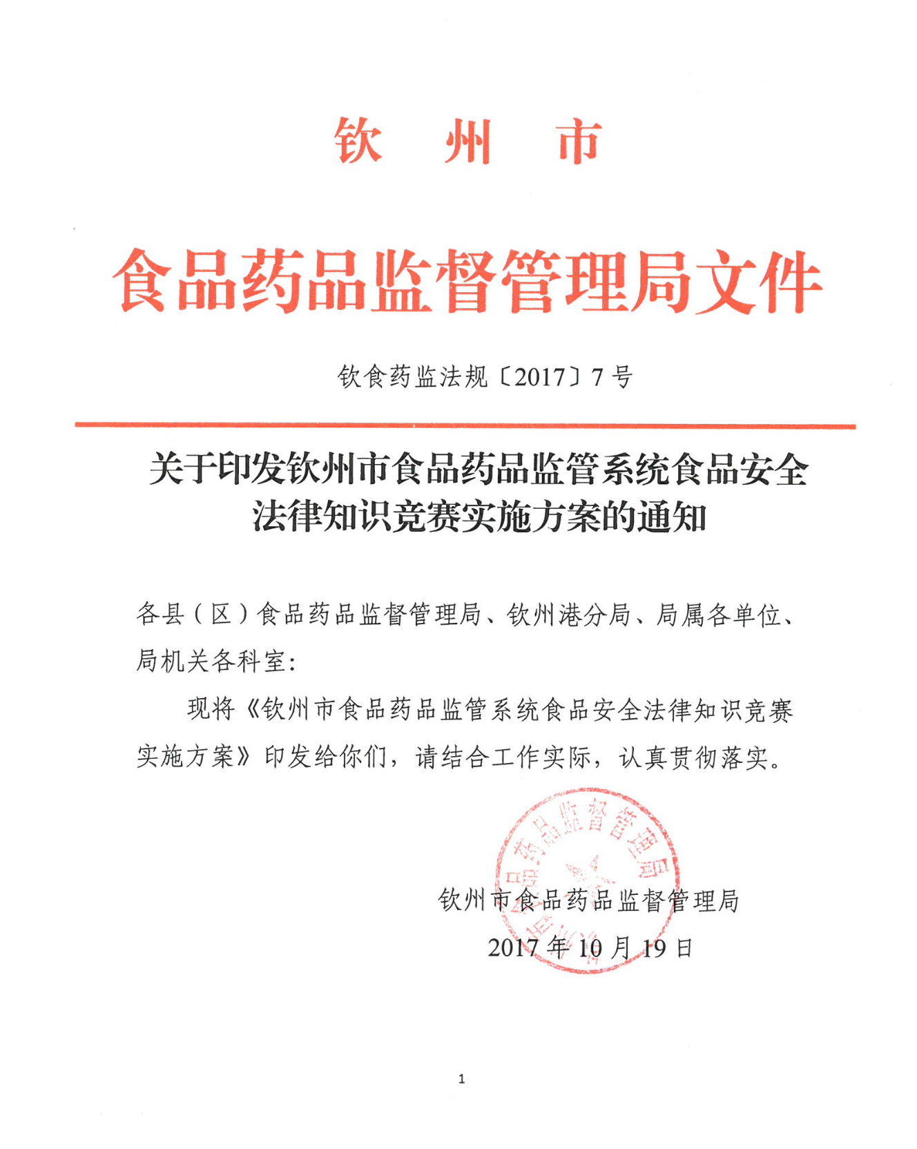 欽州市食品藥品監(jiān)管系統(tǒng)食品安全法律知識競賽實施方案