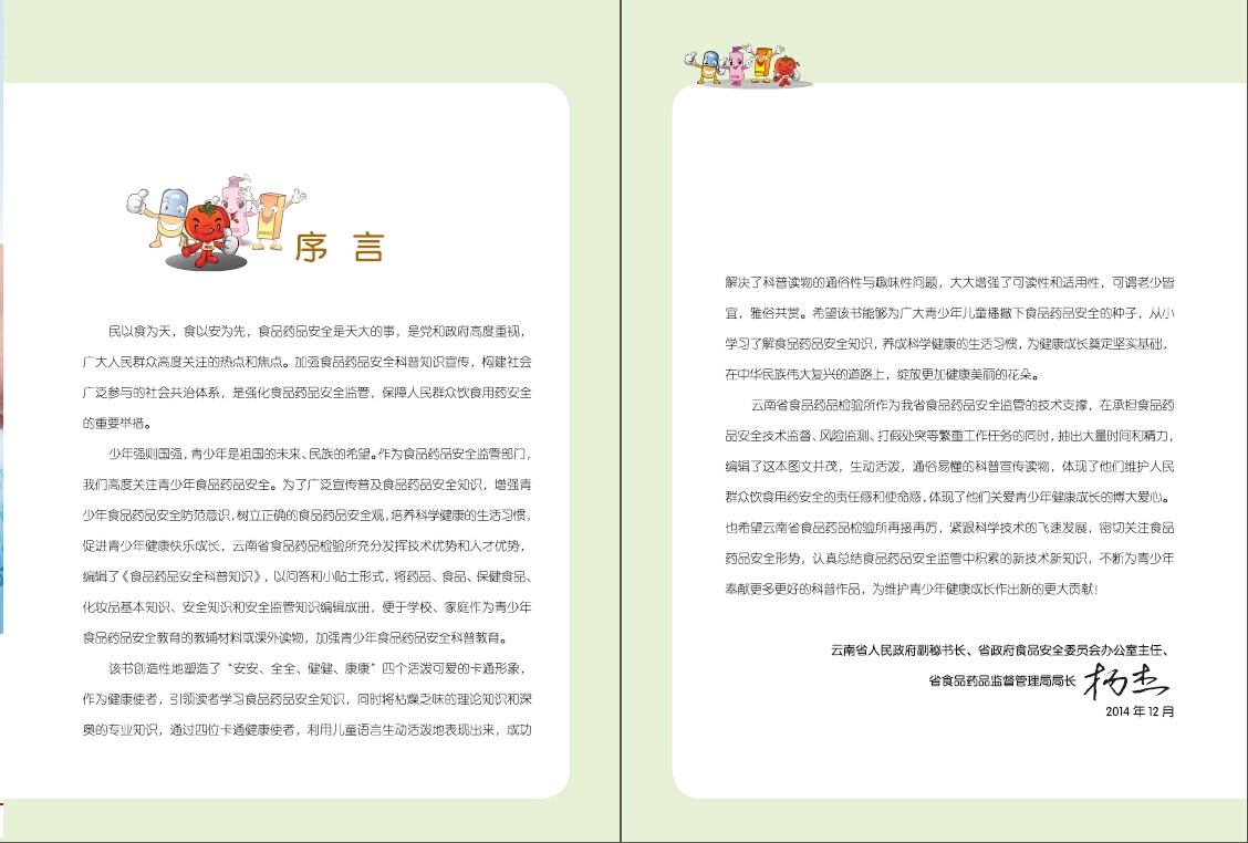 2013年,云南省食品藥品監(jiān)督檢驗研究院組織青年骨干,以“宣傳食品藥品安全科普知識,提高青少年飲食用藥安全防范意識”為主題,編輯了青少年科普宣傳叢書《食品藥品安全知識問答》,宣傳食品、藥品、保健食品、化妝品研發(fā)、生產(chǎn)、檢驗等環(huán)節(jié)的科技知識,宣傳食品、藥品、保健食品、化妝品安全監(jiān)管常識。書籍面世之初便得到了食品藥品監(jiān)管系統(tǒng)內(nèi)同仁們的廣泛認可和高度肯定,還得到了政府部門、中小學校以及新聞媒體等單位的贊譽和認可。隨著書籍影響面逐漸擴大,很多單位或個人甚至慕名前來索書,但由于此書以贈閱為主,數(shù)量實在有限,未能滿足很多渴求食品藥品安全知識人群的需要。