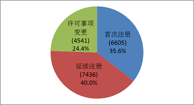 2017年,各省級食品藥品監(jiān)管部門共批準(zhǔn)境內(nèi)第二類醫(yī)療器械注冊18582項(xiàng),與2016年相比增長19.5%。其中首次注冊6605項(xiàng),延續(xù)注冊7436項(xiàng),許可事項(xiàng)變更注冊4541項(xiàng)。