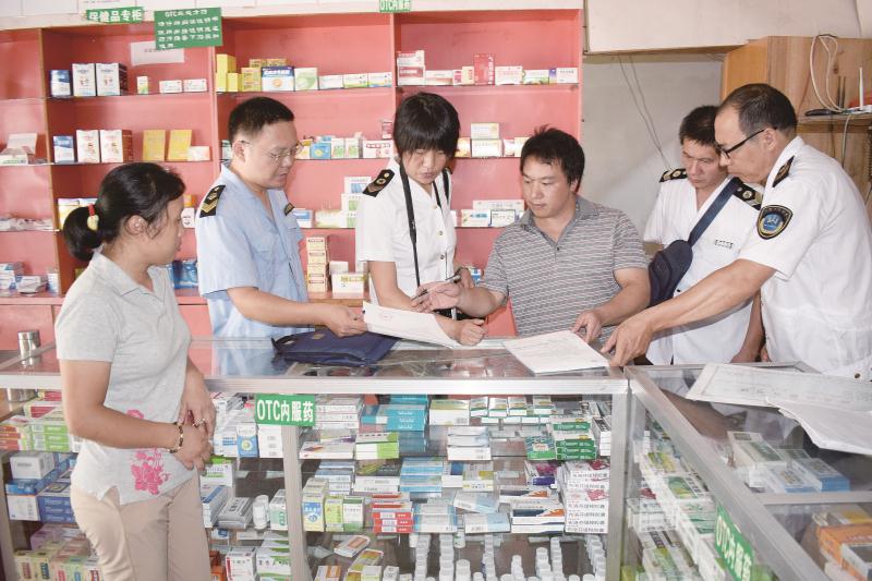 圖為廣西壯族自治區(qū)陽朔縣食品藥品監(jiān)管人員對零售藥店進(jìn)行檢查指導(dǎo)/攝影 伍章健