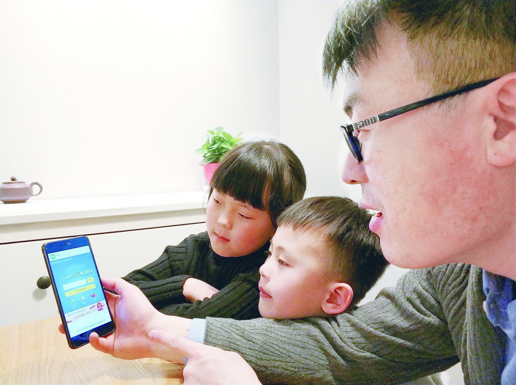圖為青島市民張先生一家正在用“食安笑臉地圖”挑選心儀的飯店。