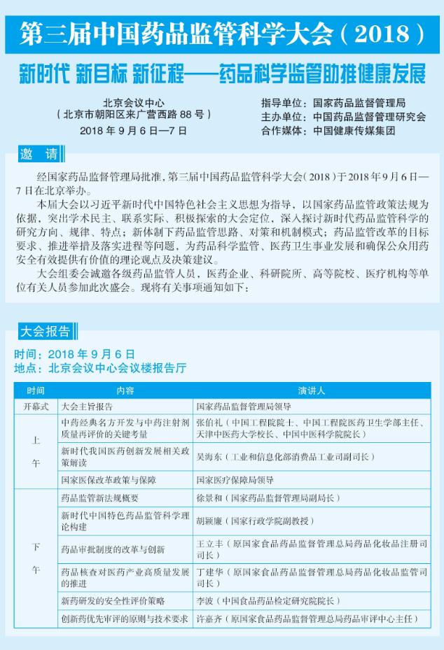 第三屆中國藥品監(jiān)管科學(xué)大會(2018)將于9月在京召開