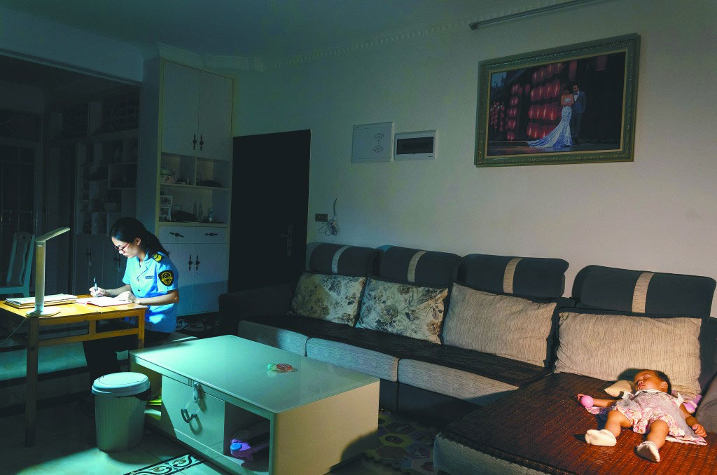 結(jié)束了一天的工作,董秀月回到家中已經(jīng)夜里10點(diǎn)多了。她1歲多的女兒等不到媽媽?zhuān)谏嘲l(fā)上睡著了。董秀月開(kāi)了臺(tái)燈,開(kāi)始整理一天外出檢查的材料。