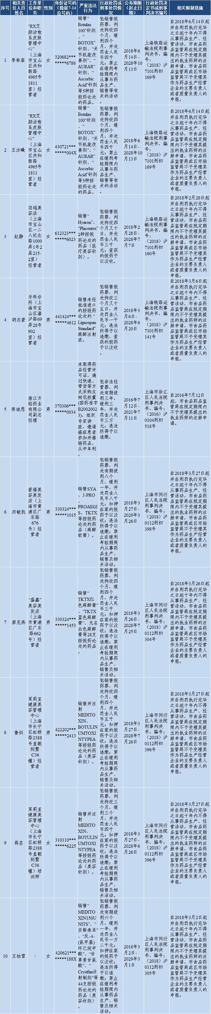 為保障公眾飲食用藥安全,加大對食品藥品嚴(yán)重違法失信生產(chǎn)經(jīng)營者及相關(guān)責(zé)任人的重點監(jiān)管力度,推進本市食品藥品安全信用體系建設(shè),依據(jù)《中華人民共和國藥品管理法》及其實施條例、《中華人民共和國政府信息公開條例》《藥品安全“黑名單”管理規(guī)定(試行)》《上海市食品藥品嚴(yán)重違法生產(chǎn)經(jīng)營者與相關(guān)責(zé)任人員重點監(jiān)管名單管理辦法》等法律法規(guī)和相關(guān)規(guī)定,上海市食品藥品監(jiān)督管理局決定將季希蓉等10人列入本市食品藥品嚴(yán)重違法生產(chǎn)經(jīng)營者與相關(guān)責(zé)任人員重點監(jiān)管名單。