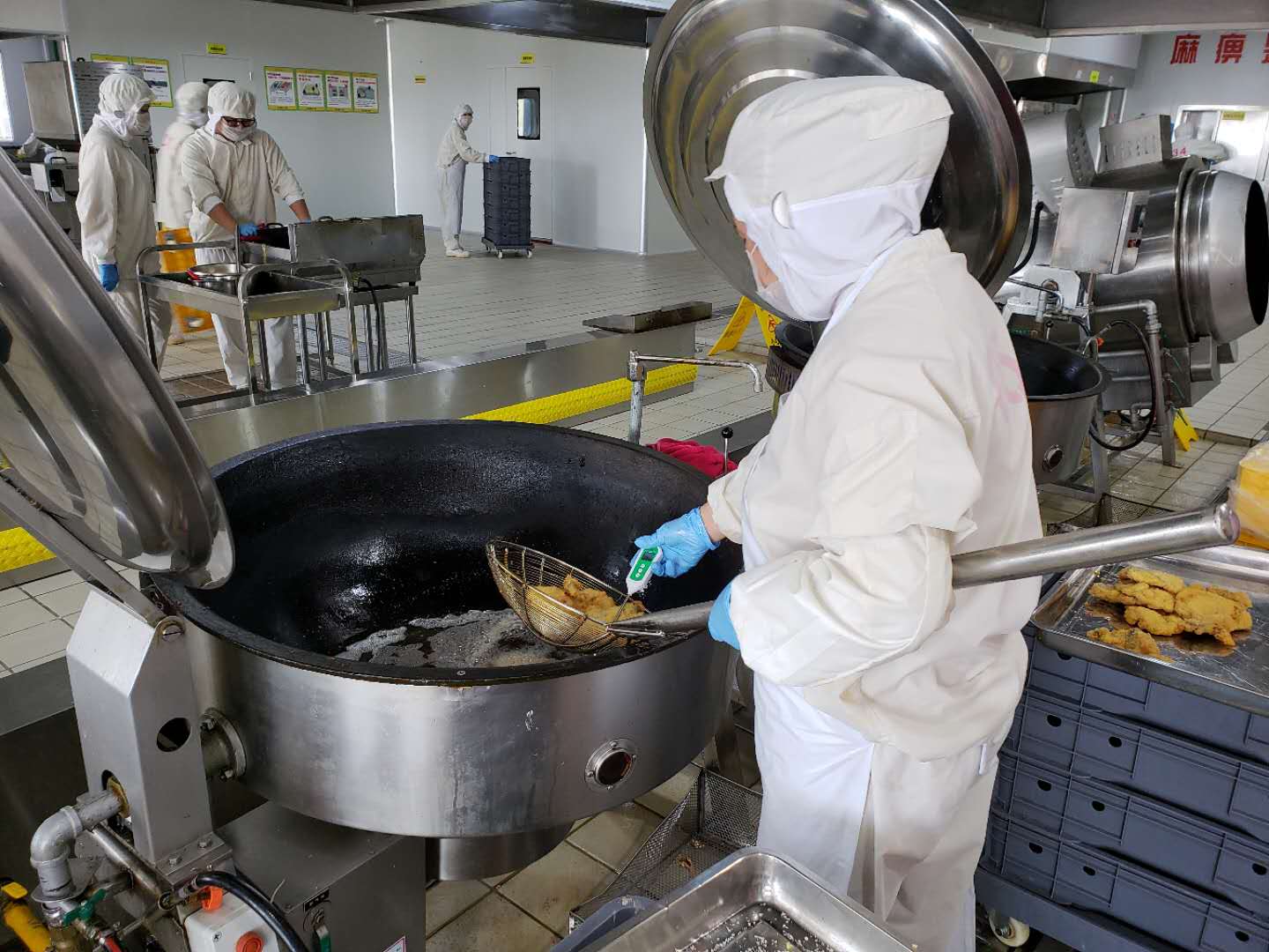 隨后執(zhí)法人員來(lái)到食品加工區(qū),根據(jù)要求熱鏈盒飯需全程熱鏈保存,且中心溫度始終保持在60℃以上?,F(xiàn)場(chǎng),執(zhí)法人員實(shí)測(cè)一盆剛剛出鍋的炸豬排,實(shí)測(cè)中心溫度為87℃。執(zhí)法人員告訴記者,對(duì)于煎炸食物,規(guī)范要求為70℃以上,“保持一個(gè)比較高的中心溫度,能夠防止后續(xù)細(xì)菌的繁殖?!?/p>