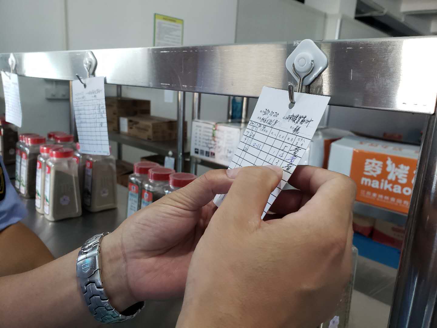在該企業(yè),執(zhí)法人員率先走進(jìn)5號(hào)冷藏庫(kù),庫(kù)中每一份原材料與調(diào)味料均配備一張相對(duì)應(yīng)的記錄卡,顯示食材的進(jìn)庫(kù)、出庫(kù)與采購(gòu)情況。