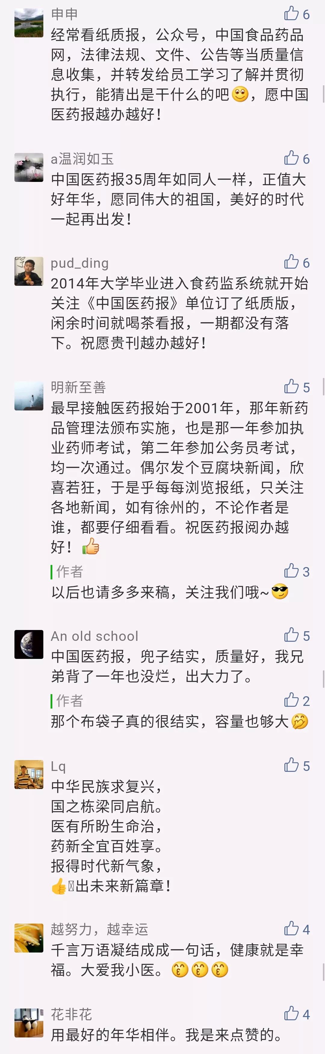 紙短情長,每一條評論都讓小編為之動容。《中國醫(yī)藥報》在眾多祝福中定當(dāng)不負眾望,不忘初心,砥礪前行!