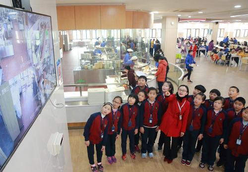 浙江省多個市、縣均建成“陽光廚房”學(xué)校食堂食品安全智慧監(jiān)管操作系統(tǒng)。圖為諸暨市海亮教育園師生觀看學(xué)校食堂“陽光廚房”直播。
