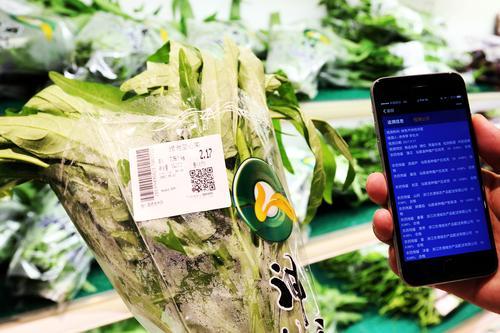 在智慧農(nóng)貿(mào)市場,消費者可以通過手機(jī)APP掃描二維碼進(jìn)行食品信息追溯。