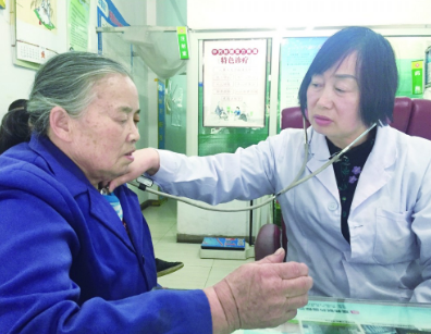 李萬芬正在給患者聽診。