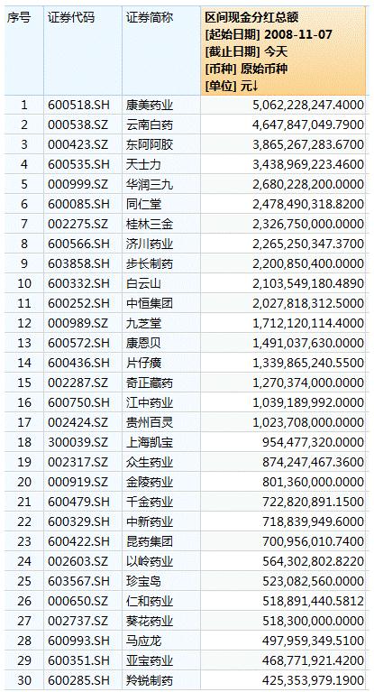 中藥板塊分紅誰最強?康美藥業(yè)云南白藥東阿阿膠居前三