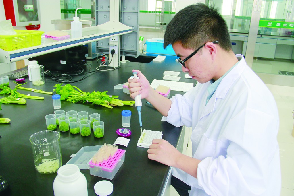 南通農(nóng)副產(chǎn)品物流中心的農(nóng)產(chǎn)品檢驗(yàn)檢測(cè)中心每天完成快檢600批次以上。