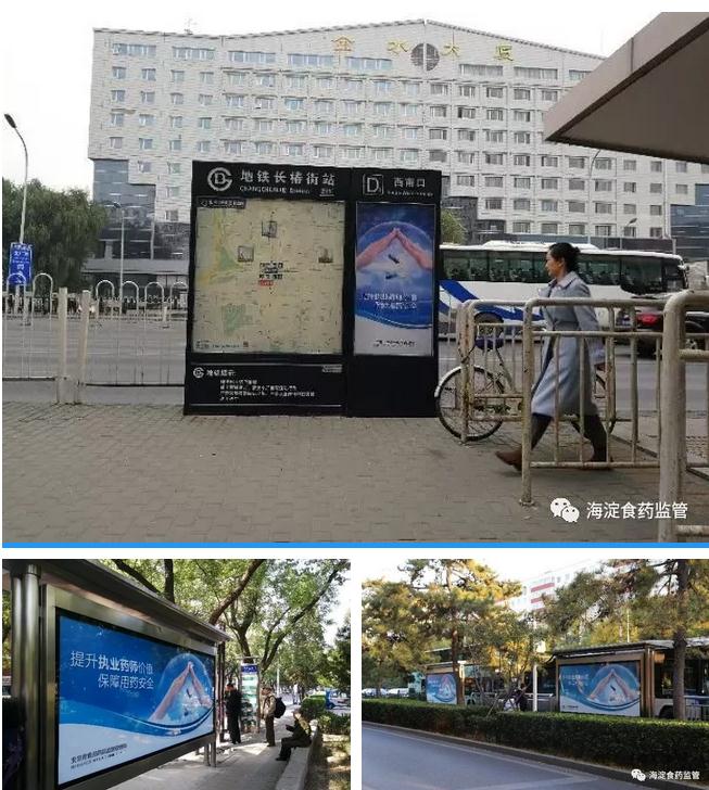 “全國安全用藥月”期間,執(zhí)業(yè)藥師注冊中心選擇北京中心城區(qū)人流密集的海淀黃莊南站、宣武門東、雙井橋東站等公交站亭及長椿街地鐵站等幾十個站點,采取固定宣傳點和流動宣傳點兩種方式,在同一時間段集中設(shè)置“提升執(zhí)業(yè)藥師價值 保障用藥安全”大型燈箱公益廣告。