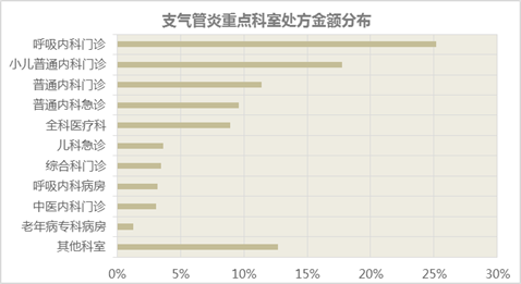呼吸內(nèi)科、小兒普通內(nèi)科、普通內(nèi)科為支氣管炎主要就診科室
