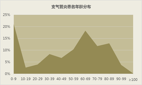 整體處方市場(chǎng)在性別方面,無(wú)明顯性別差異;在年齡方面,0~9歲兒童和60~70歲老年人容易患上支氣管炎。