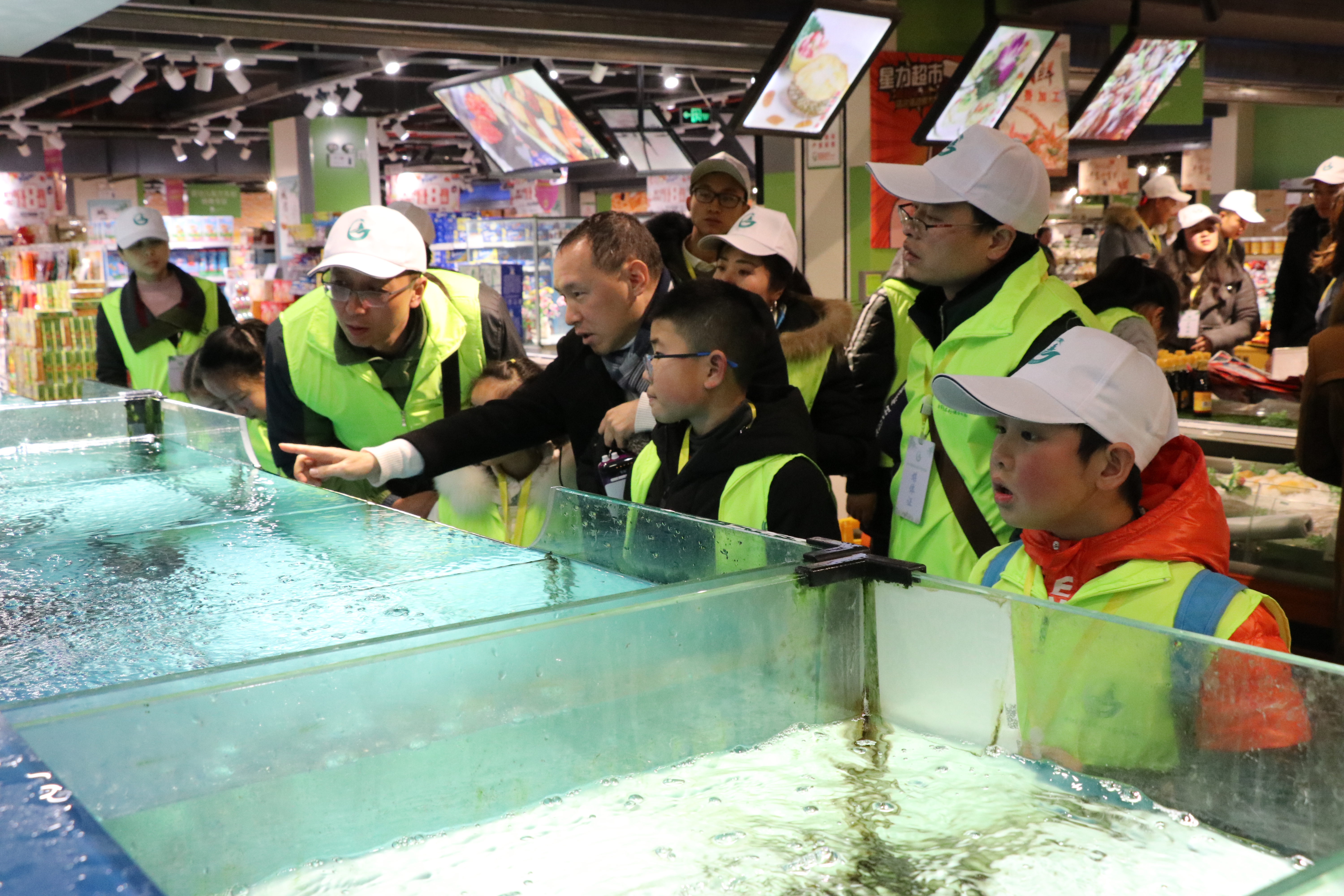 觀摩團(tuán)代表在貴陽市觀山湖區(qū)星力超市會(huì)展城店仔細(xì)觀察水產(chǎn)區(qū)