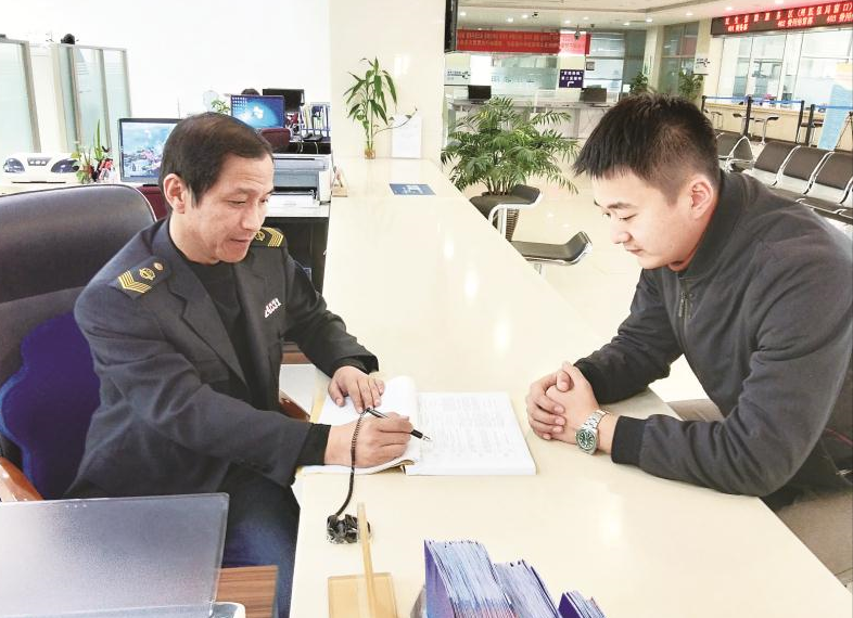 延邊朝鮮族自治州食品藥品監(jiān)管局政務(wù)大廳工作人員為市民介紹業(yè)務(wù)辦理注意事項(xiàng)。