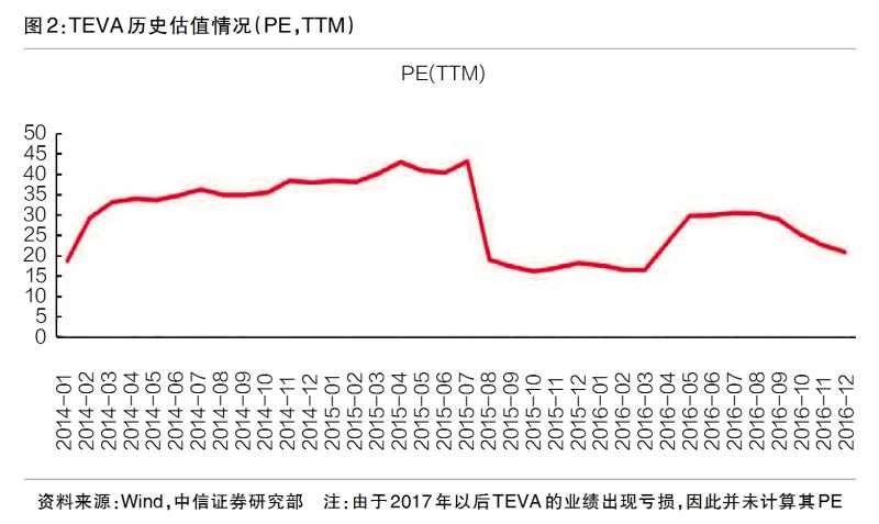 其次,從國(guó)際仿制藥企業(yè)的估值來(lái)看,全球排名前二的仿制藥公司——TEVA和Mylan的估值也長(zhǎng)期保持在20X PE(TTM)左右的估值水平(見圖2)。經(jīng)歷過此前的調(diào)整,目前國(guó)內(nèi)仿制藥企業(yè)的估值已經(jīng)處于這一位置,有些甚至低于20X PE(TTM),筆者認(rèn)為其估值繼續(xù)下跌的空間已經(jīng)不大。同時(shí),部分仿制藥企業(yè)已經(jīng)開始了向創(chuàng)新藥的轉(zhuǎn)型,考慮到創(chuàng)新藥企業(yè)可以享受更高的估值,我們認(rèn)為國(guó)內(nèi)藥企的估值已經(jīng)位于相對(duì)底部。