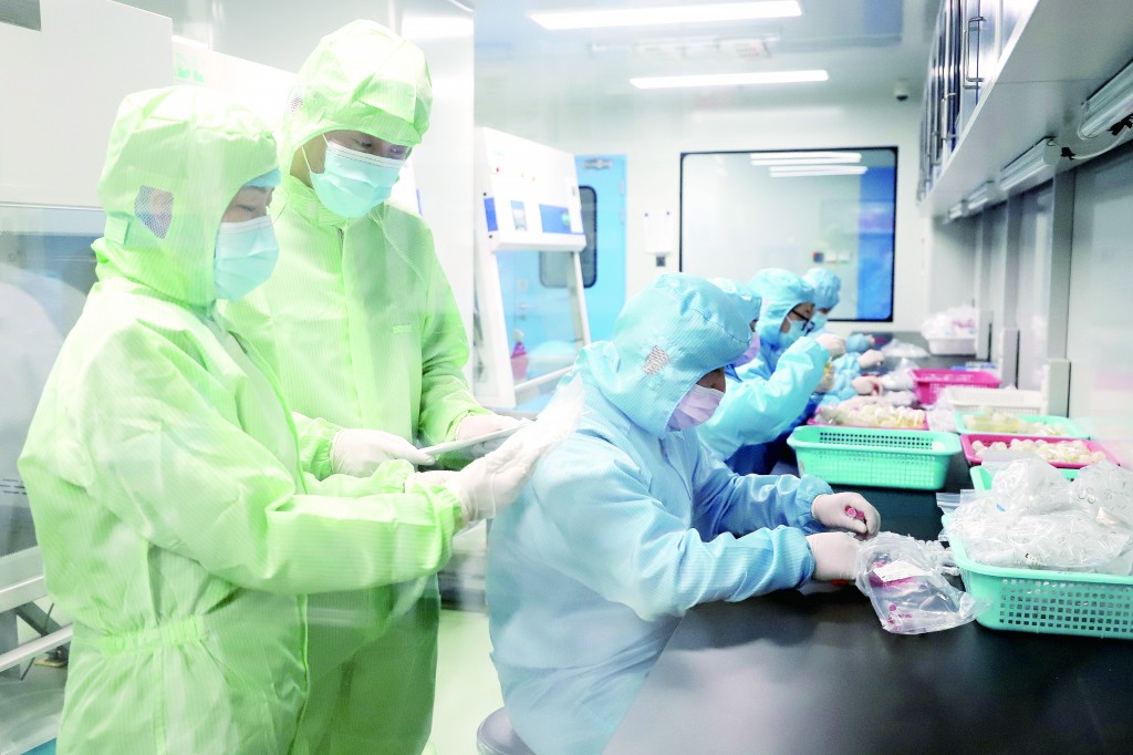 在北京全式金生物技術(shù)有限公司,監(jiān)管人員按照潔凈控制標(biāo)準(zhǔn),“全副武裝”接受風(fēng)淋。
