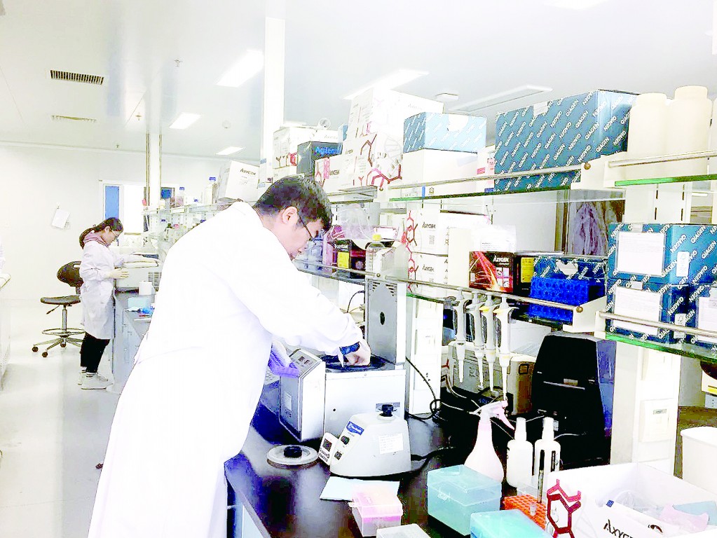圖為中國生物研發(fā)人員在實驗室里忙碌著。
