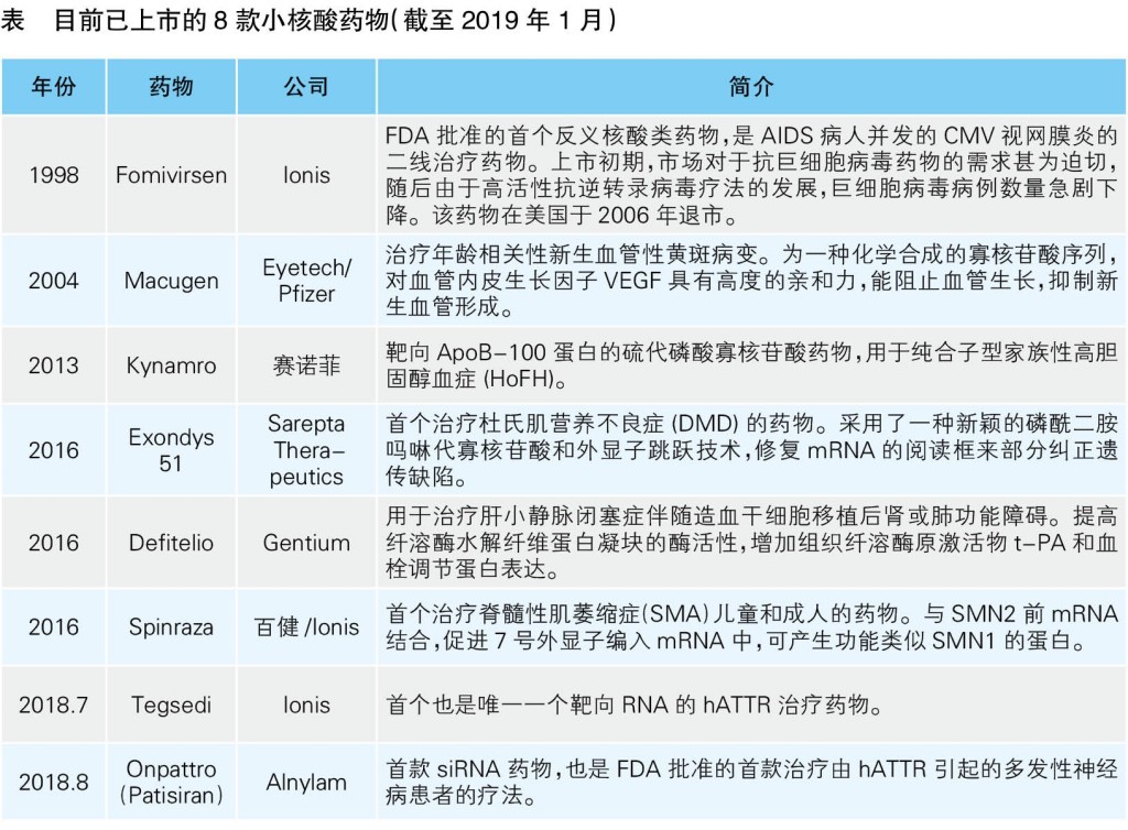 2017年11月,美國FDA認(rèn)定Alnylam制藥公司針對轉(zhuǎn)運(yùn)甲狀腺素蛋白的RNAi療法Patisiran為突破性療法;2018年8月,F(xiàn)DA批準(zhǔn)Patisiran輸注治療由遺傳性轉(zhuǎn)甲狀腺素蛋白淀粉樣變性(hATTR)引起的周圍神經(jīng)疾病患者。至此,Patisiran成為FDA批準(zhǔn)的首款小干擾RNA藥物。