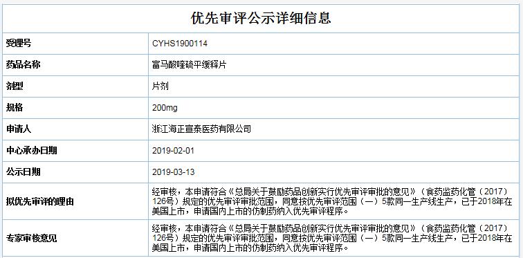 2019年3月13日,藥審中心新公示了優(yōu)先審評的藥品品種,公示期間如有異議,可在藥審中心網(wǎng)站“信息公開-->優(yōu)先審評公示-->擬優(yōu)先審評品種公示”欄目下提出異議。