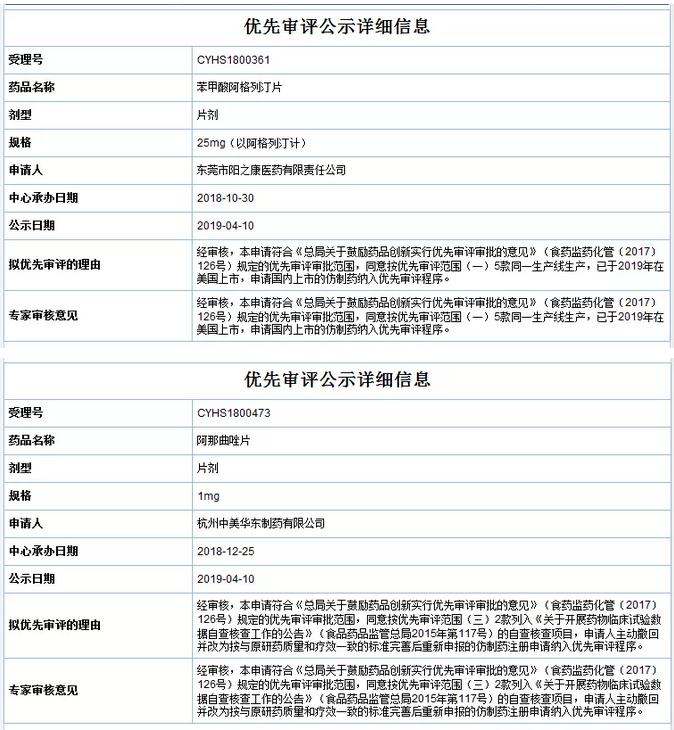 4月10日,藥審中心網(wǎng)站擬優(yōu)先審評公示欄目新增6個品種。東莞市陽之康醫(yī)藥有限責任公司的苯甲酸阿格列汀片(規(guī)格為6.25mg、12.5mg、25mg)、杭州中美華東制藥有限公司的阿那曲唑片、東莞市陽之康醫(yī)藥有限責任公司的鹽酸二甲雙胍片(規(guī)格為500mg、850mg)有望加入優(yōu)先審評行列。
