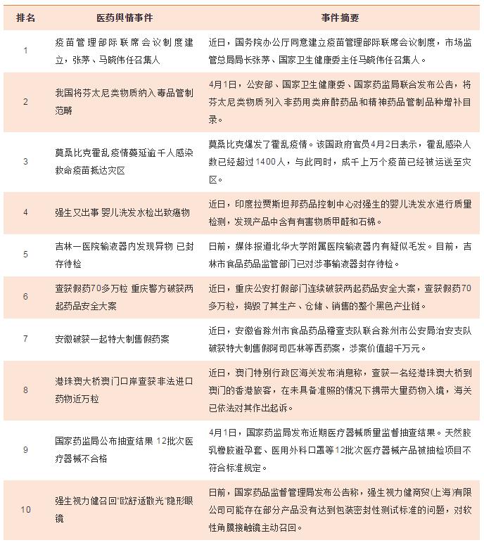醫(yī)藥輿情事件排行榜