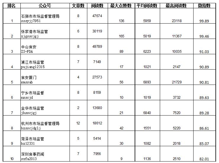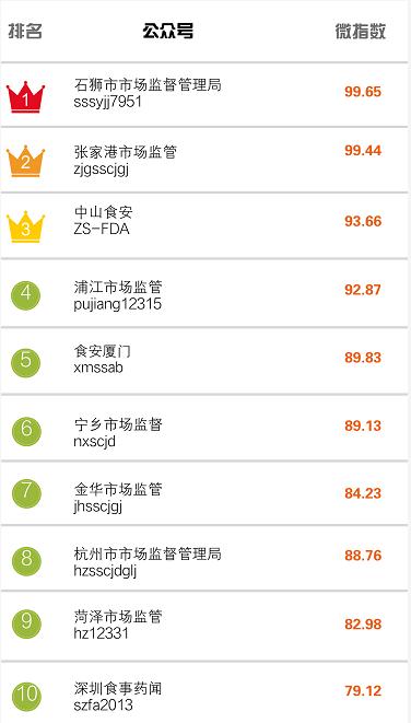 最新TOP10|食藥監(jiān)管部門政務(wù)微信排行榜