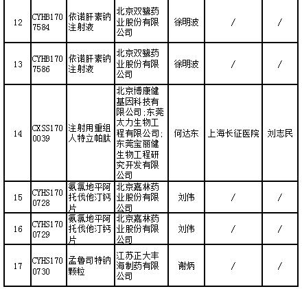17個藥物臨床試驗數(shù)據(jù)現(xiàn)場核查注冊申請目錄