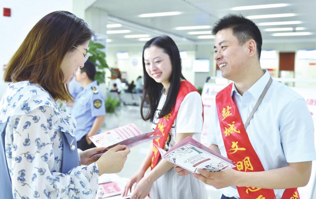 日前,江蘇省鹽城市市場監(jiān)管局城南分局工作人員在區(qū)政務(wù)服務(wù)中心開展化妝品安全知識宣傳活動,現(xiàn)場發(fā)放資料,向市民宣傳科學(xué)護(hù)膚知識、真假化妝品識別方法,并接受群眾咨詢。蔣曉鵬 攝