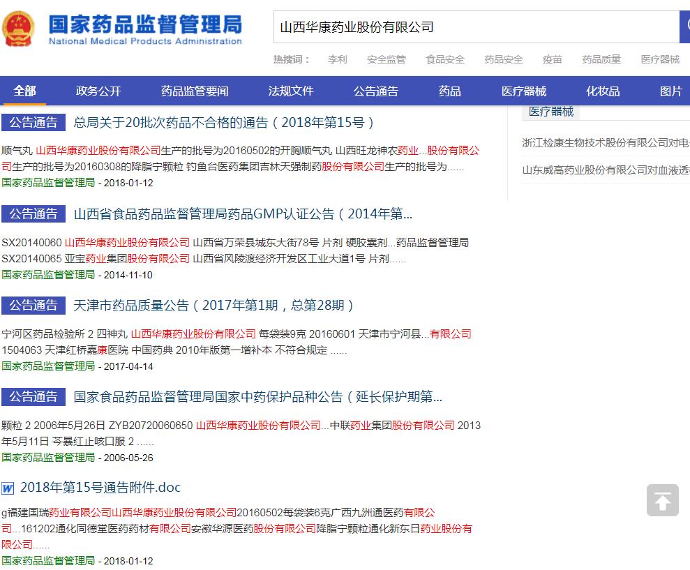 2018年1月12日,原國(guó)家食藥監(jiān)總局官網(wǎng)發(fā)布《總局關(guān)于20批次藥品不合格的通告(2018年第15號(hào))》。該通告顯示,經(jīng)廈門(mén)市食品藥品質(zhì)量檢驗(yàn)研究院檢驗(yàn),標(biāo)示為山西華康藥業(yè)股份有限公司生產(chǎn)的批號(hào)為20160502的開(kāi)胸順氣丸不合格,不合格項(xiàng)目為水分。