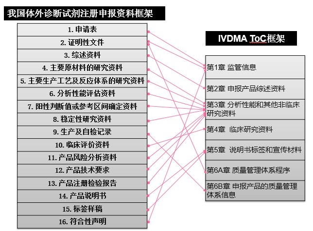 圖2 體外診斷試劑申報資料框架對應(yīng)情況