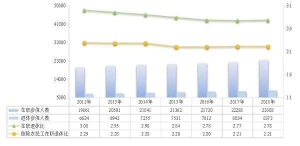 2012-2018年職工醫(yī)保參保人員結(jié)構(gòu)