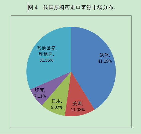 我國進口量比較大的原料藥品類包括心血管類、氨基酸類、抗感染類、頭孢菌素類和抗癌類。歐美來源的原料藥占據我國進口原料藥的一半以上,主要是跨國企業(yè)從其位于歐美的生產基地進口原料藥并在中國生產原研制劑所致;從印度進口的原料藥金額達到7.64億美元,同比增長35.97%,主要是我國本土企業(yè)進口的一些國內供應少、價格高的品種,如右美沙芬、頭孢克洛、氯丙嗪、頭孢側鏈等等。