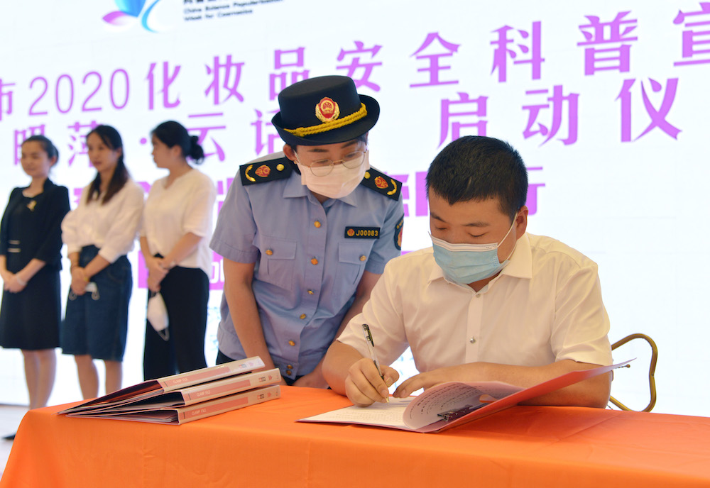 5月25日晚,15家企業(yè)代表與該局簽訂《質(zhì)量安全承諾書》。(黃躍輝 攝)
