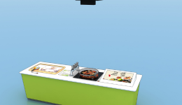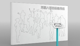 背景墻上畫有不同年齡和職業(yè)的人物,如老人、孕婦、青少年、幼兒。顯示器可由參與者操作左右移動,并裝置攝像頭,可實時拍攝前方的人物的圖像,傳送到顯示器中,經(jīng)圖像識別系統(tǒng)識別后,可在圖像上疊加動畫演示該人群適合的保健品,以及保健品對其的作用。