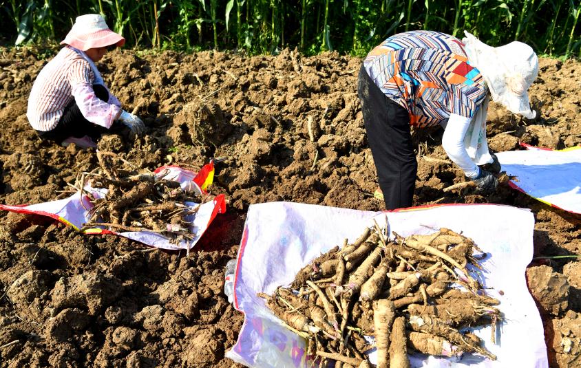 初秋時(shí)節(jié),“藥材之鄉(xiāng)”安徽省亳州市種植的中藥材白芷迎來收獲期。(劉勤利 孫麗敏 攝)
