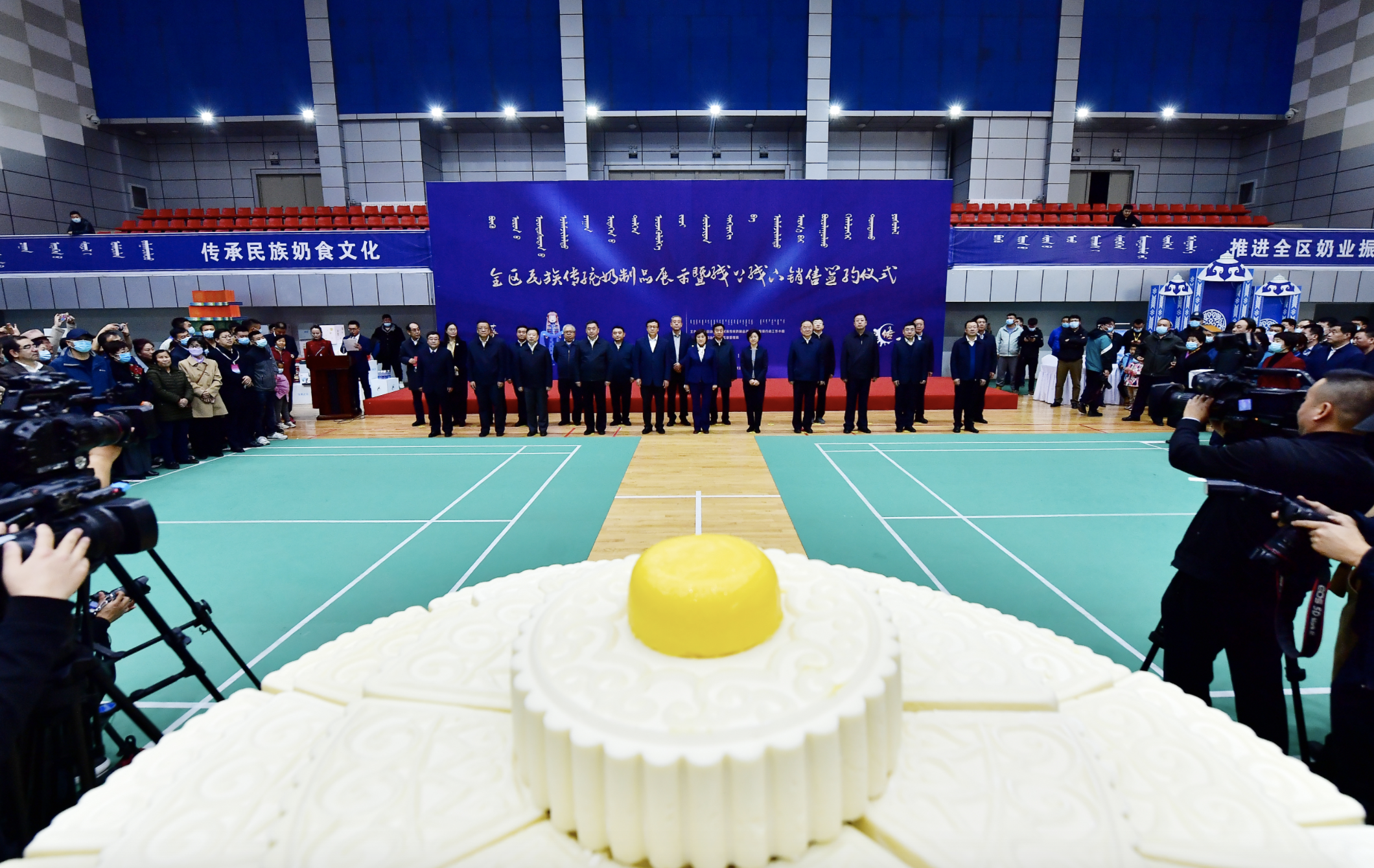 與會(huì)領(lǐng)導(dǎo)調(diào)研了鑲黃旗民族傳統(tǒng)奶制品產(chǎn)業(yè)園、檢測(cè)室以及部分民族傳統(tǒng)奶制品企業(yè),參觀了各盟市民族傳統(tǒng)奶制品產(chǎn)品展示,共同見證了鑲黃旗乳香飄乳業(yè)公司制作的禮儀乳酪盤獲得“大世界基尼斯之最”紀(jì)錄認(rèn)證。與會(huì)人員現(xiàn)場(chǎng)觀摩了鑲黃旗民族傳統(tǒng)奶制品產(chǎn)業(yè)試點(diǎn)示范工作?,F(xiàn)場(chǎng)會(huì)上,還舉行了線上線下銷售簽約儀式。