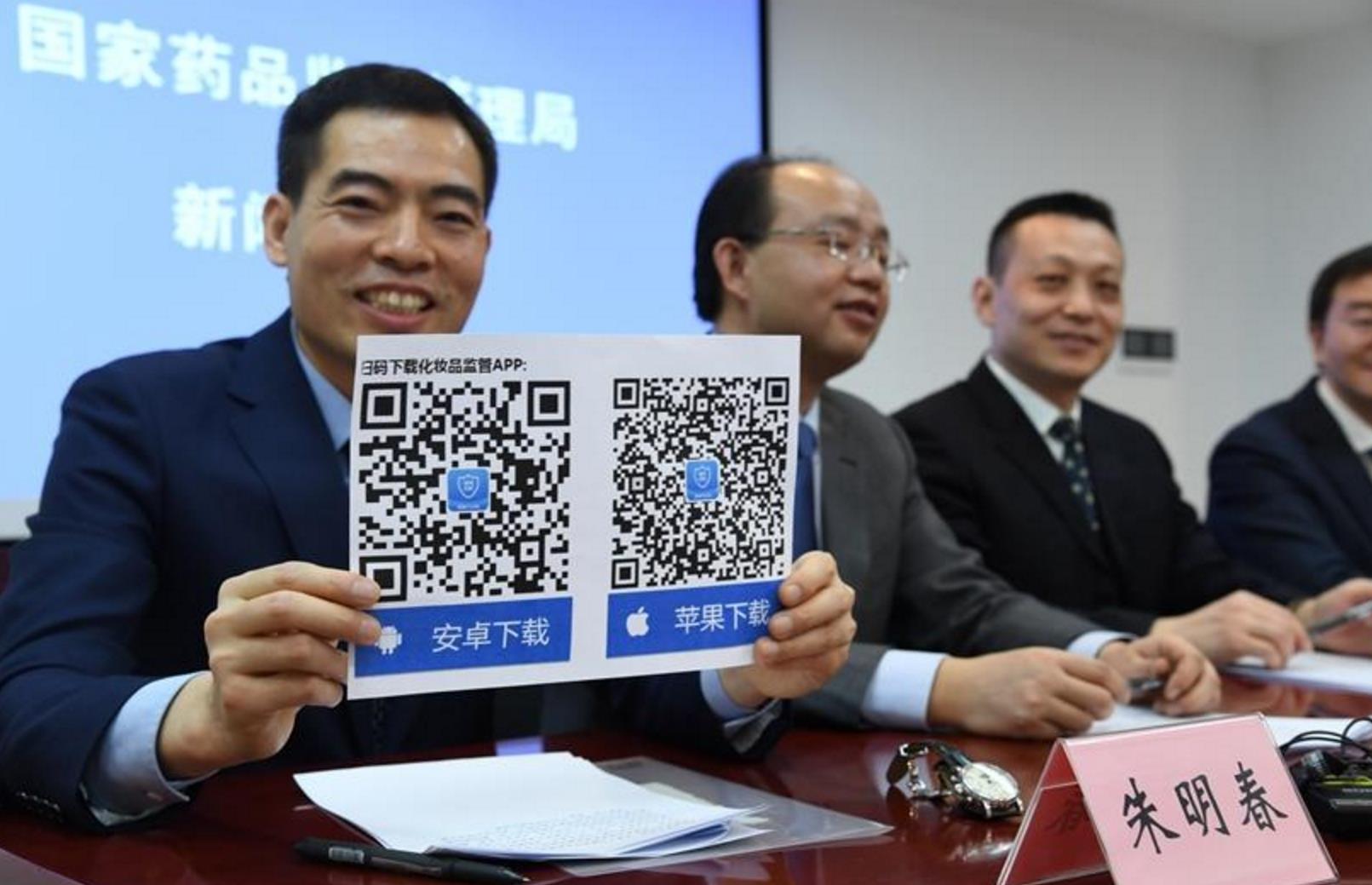 愛美之心,人皆有之?;瘖y品已成為廣大消費者扮靚美麗生活的重要組成部分。大家選購時可以通過國家藥監(jiān)局發(fā)布的化妝品監(jiān)管APP查詢相關(guān)信息。比如,企業(yè)和產(chǎn)品批準(zhǔn)信息、科普知識等,最近有朋友問我,因為疫情防控需要,長時間佩戴口罩,可能形成“口罩臉”,這種情況下,如何做好護膚預(yù)防“口罩臉”,這個APP上就有相關(guān)介紹。這款A(yù)PP發(fā)布后得到了廣大消費者的喜愛,下載量已達192萬,成為網(wǎng)紅APP,國家藥監(jiān)局網(wǎng)站和手機上都可以下載。大家也可以掃描我手中的二維碼下載。
